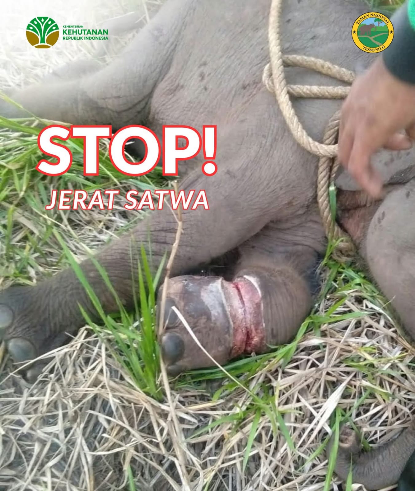 Porosmedia.com – Jerat yang dipasang untuk Nabi Hutan dan Rusa tidak pernah bisa memilih korbannya, sehingga satwa dilindungi dan terancam punah, seperti Gajah, Harimau, Tapir, Beruang dan lainnya ikut menjadi korban.