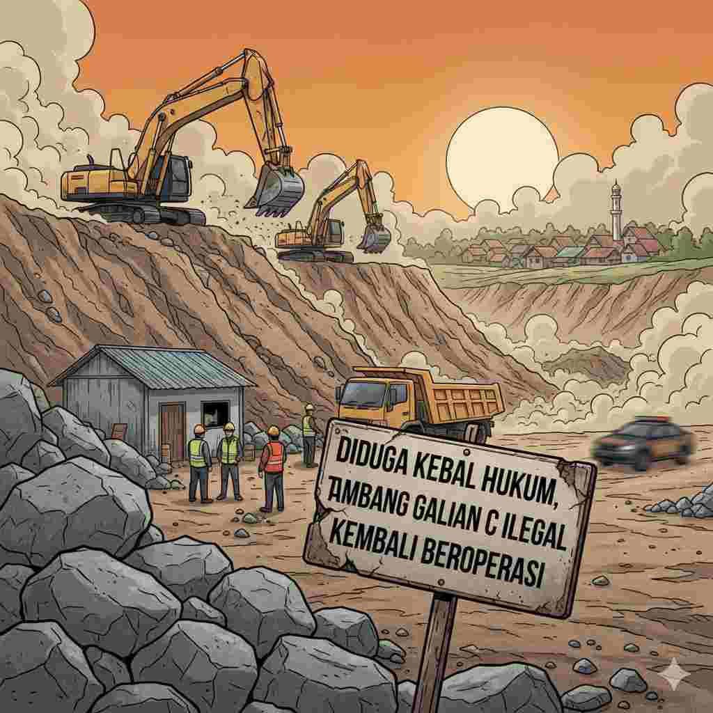 Porosmedia.com, Majalengka – Dugaan aktivitas pertambangan galian C ilegal kembali mencuat di Kabupaten Majalengka. Forum Gerakan Massa Pecinta Lingkungan (FGMPL) secara resmi melaporkan dugaan tindak pidana pertambangan tanpa izin yang diduga dilakukan oleh Komarudin dan/atau BS Sintoris di Blok Desa RT 004 RW 002, Desa Cibeureum, Kecamatan Talaga, Kabupaten Majalengka, Jawa Barat.