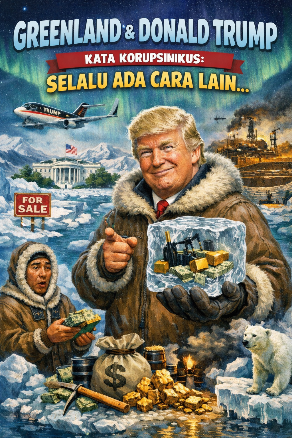 Donald Trump pernah ingin “membeli” Greenland. Semua tertawa. Seperti biasa: manusia selalu menertawakan kebenaran ketika datang memakai kostum badut. Tawa itu lalu basi. Karena ternyata bukan Greenland yang konyol—kita saja yang terlalu naif mengira dunia ini tak bisa diperjualbelikan.