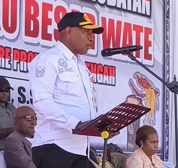 Gubernur Papua Tengah, Meki F. Nawipa, S.H, melalui sambutan tertulis yang dibacakan Asisten III Setda Papua Tengah, menyampaikan ucapan selamat atas dinobatkannya Otis Monei sebagai Kepala Suku Besar Wate.