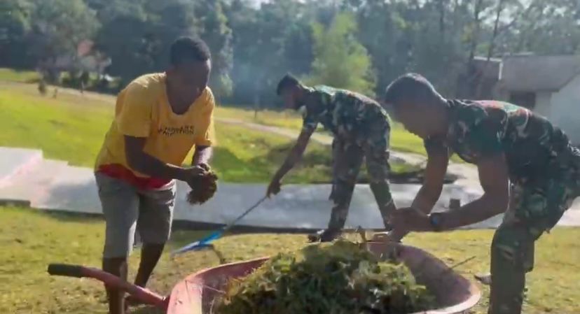 Porosmedia.com, Afkrem – Satgas Pamtas RI-PNG Kewilayahan Yonif 763/SBA Pos Afkrem bersama masyarakat melaksanakan kegiatan pembinaan peritorial dengan membersihkan gereja Kampung Afkrem, Kabupaten Maybrat, Provinsi Papua Barat Daya. (18/11/2025).