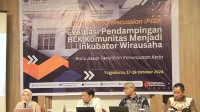 Porosmedia.com, Yogyakarta – Kementerian Ketenagakerjaan (Kemnaker) bakal mencetak ribuan Tenaga Kerja Mandiri (TKM) dan wirausaha melalui ratusan Balai Latihan Kerja (BLK) Komunitas yang didampinginya untuk menjadi inkubator wirausaha. Hal ini terungkap dalam acara Focus Group Discussion (FGD) Evaluasi Pendampingan BLK Komunitas Menjadi Inkubator Wirausaha di Hotel Grand Mercure, Yogyakarta, Kamis-Sabtu (17-19/10/2024).