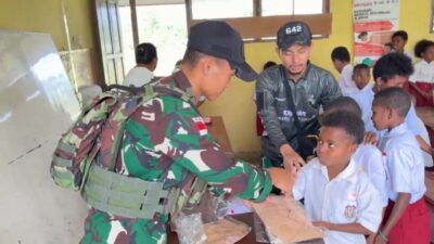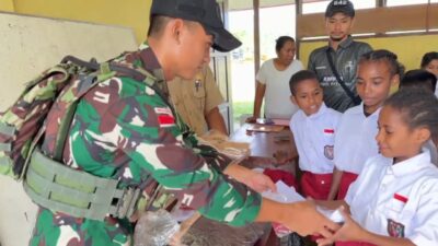 Porosmedia.com, Manokwari Selatan – Satgas Yonif 642/Kps melalui Pos Kout Tahota membagikan sargal berupa seragam sekolah untuk anak-anak SD Inpres 119 Tahota di Kampung Yarmatum dan kampung Mame Distrik Tahota, Kabupaten Manokwari Selatan, Provinsi Papua Barat. (22/7).