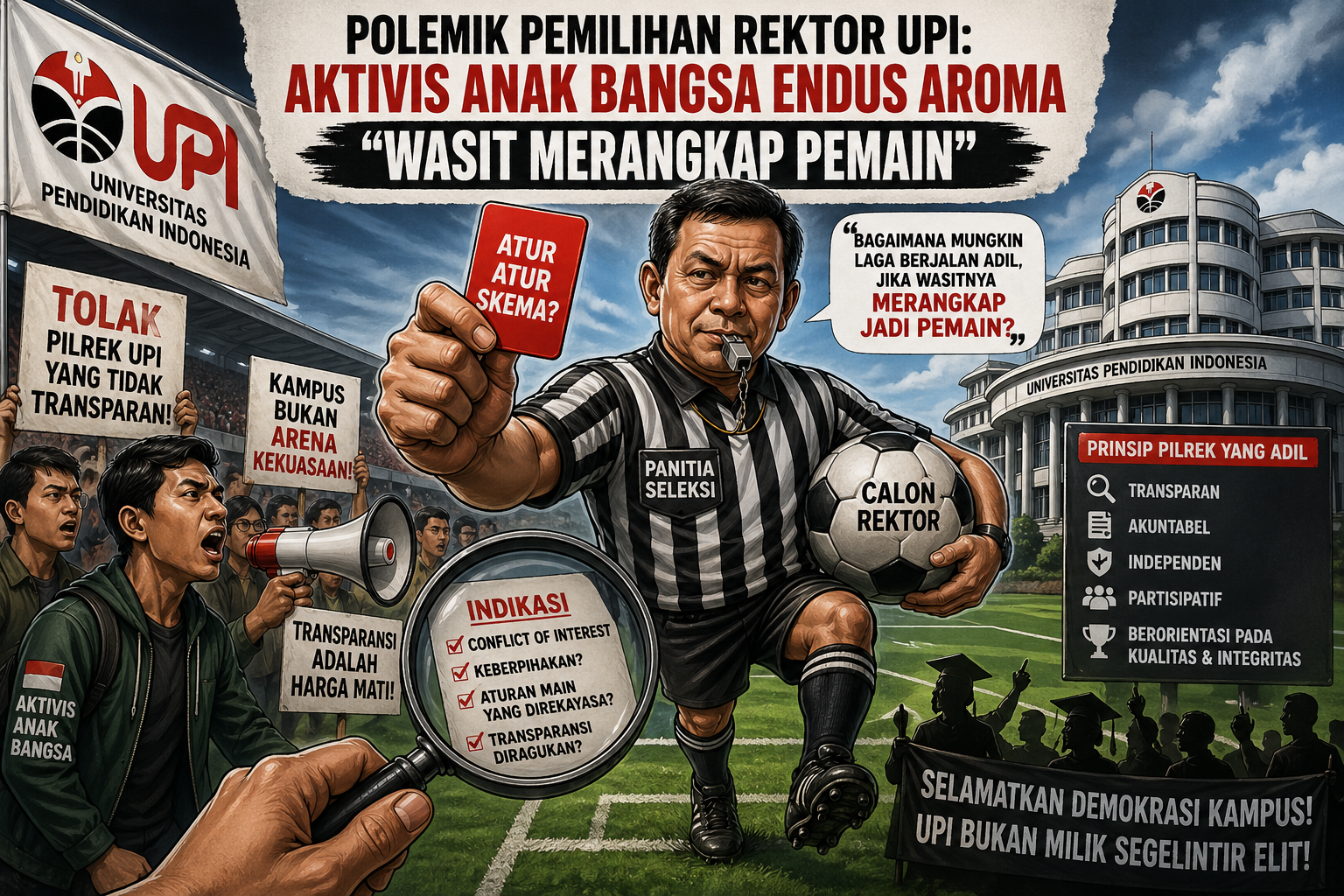 Porosmedia.com, Bandung – Integritas proses demokrasi di lingkungan Universitas Pendidikan Indonesia (UPI) kini berada di bawah sorotan tajam. Aktivis Anak Bangsa secara terbuka mengkritik dugaan praktik Conflict of Interest (benturan kepentingan) dalam suksesi kepemimpinan kampus yang seharusnya menjadi kiblat moral dan etika akademik.