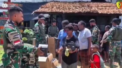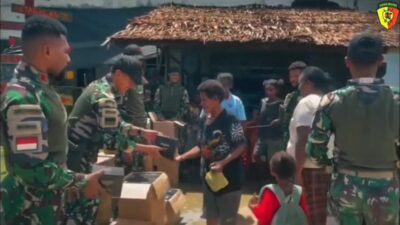 Porosmedia.com, Tambraw – Satgas Pamtas Yonif 763/SBA Berbagi Kebahagiaan dengan Memberikan Makanan Untuk Masyarakat masyarakat setempat