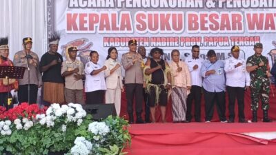 Porosmedia.com, Nabire, Papua Tengah – Penobatan Kepala Suku Besar Wate di Taman Gizi Oyehe Nabire…