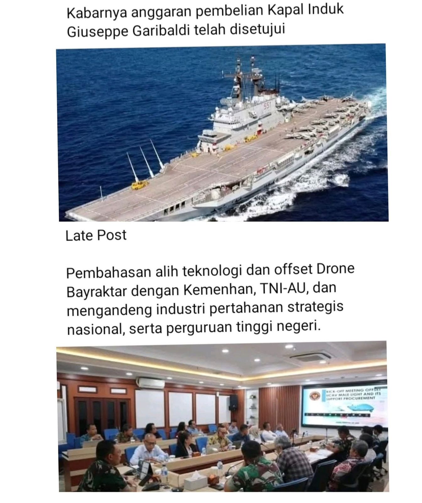 Salah satu langkah konkret adalah rencana akuisisi Kapal Induk Pendarat Amfibi Giuseppe Garibaldi yang sebelumnya merupakan armada Angkatan Laut Italia. Berdasarkan surat Bappenas tertanggal 29 Agustus 2025 kepada Kementerian Pertahanan RI, rencana pengadaan tersebut telah mendapatkan persetujuan.