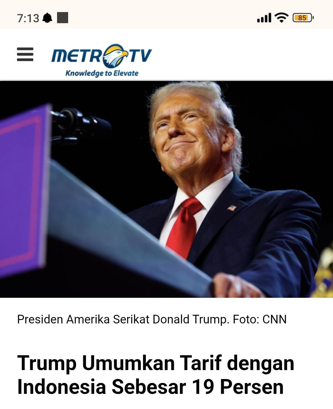 Dalam pernyataan resminya di platform Truth Social pada Senin (15/7/2025), Trump menyebut kesepakatan ini sebagai “perjanjian bersejarah yang membuka seluruh pasar Indonesia untuk pertama kalinya dalam sejarah bagi Amerika Serikat.”