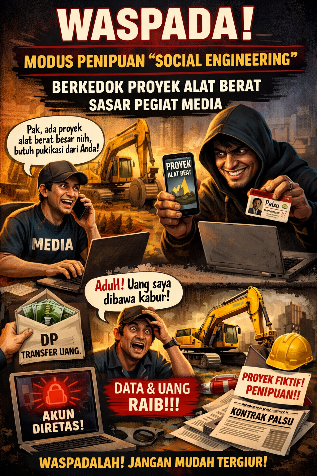 - Aktor Ketiga: Berperan sebagai pemilik alat berat yang memberikan penawaran harga “miring”.